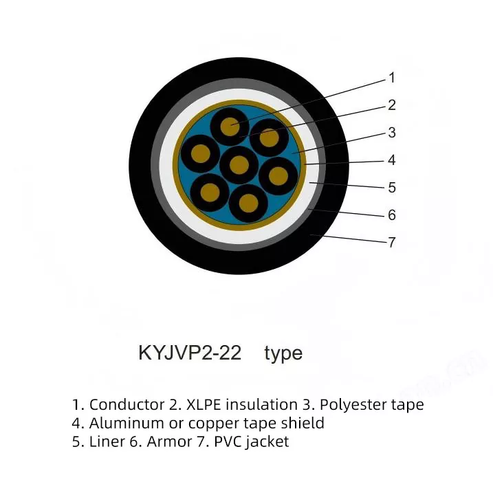 Wanneer u op zoek bent naar een kabel met ultieme bescherming voor kritische besturingssystemen onder sterke elektromagnetische interferentie, hoge mechanische risico's en complexe omgevingen (zoals directe begraving en vochtigheid), voldoet Yilan Cable's duurzame XLPE geïsoleerde PVC omhulde koperen gevlochten afgeschermde STA-controlekabel, model KYJVP-222, als topfabrikant in China, aan deze vereisten. Het combineert de drie topprestaties van dubbellaags gevlochten koperdraadafscherming (P2), stalen tapepantser (22) en temperatuurbestendigheid van 90°C (YJ), ontworpen om de absolute zuiverheid van signalen en de absolute veiligheid van fysieke verbindingen onder de zwaarste omstandigheden te garanderen.